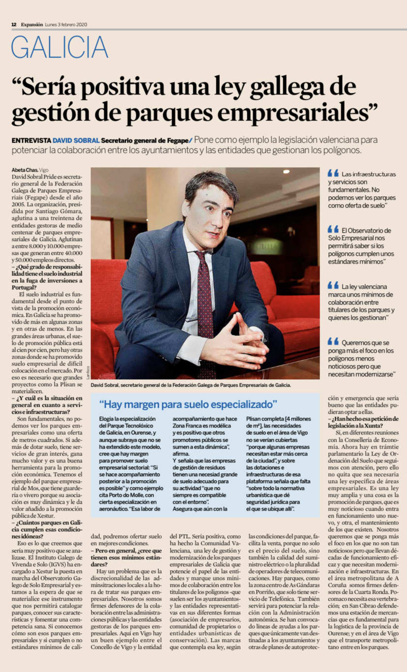 03 Feb “Sería positiva una ley gallega de gestión de parques empresariales”